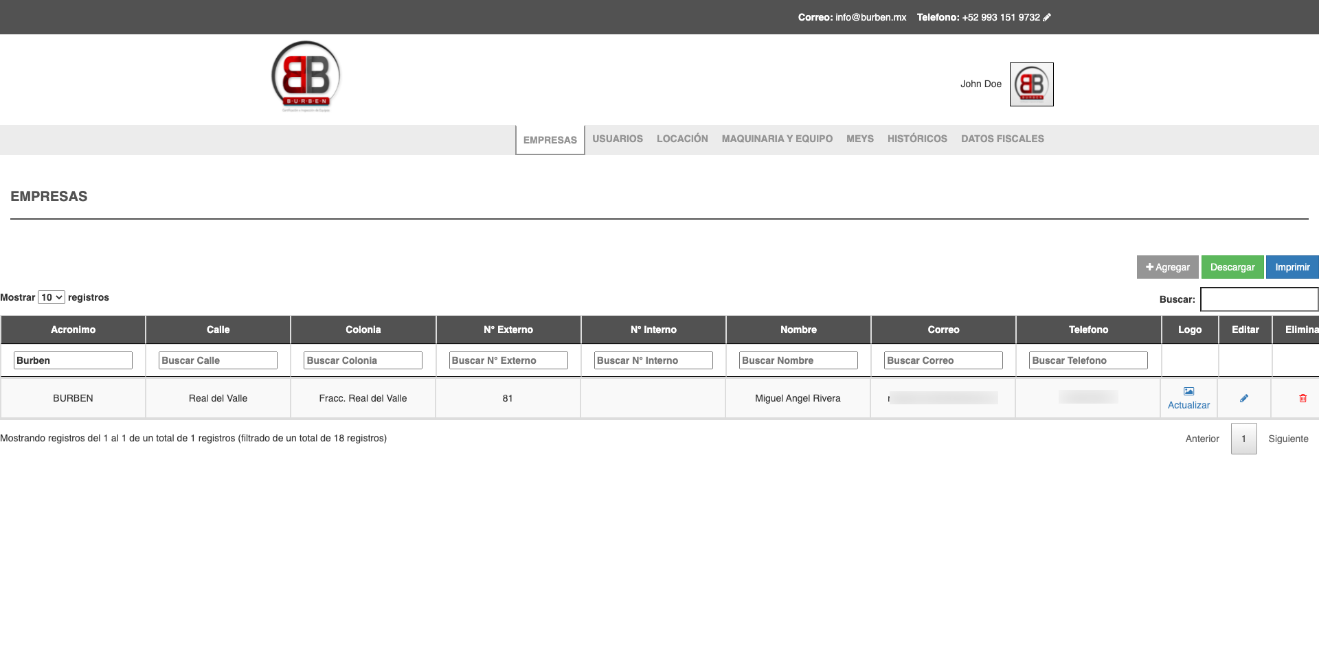 Burben Web es un sistema que permite el seguimiento y control de información dentro de tu empresa, levantamientos de usuarios, asignación de usuario a locaciones para tener una mejor estructura de tu personal, altas y bajas de tus equipos y/o herramientas,así como la creación de reportes de campos, fotograficos y descarga de certificaciones. Todo en un solo lugar.